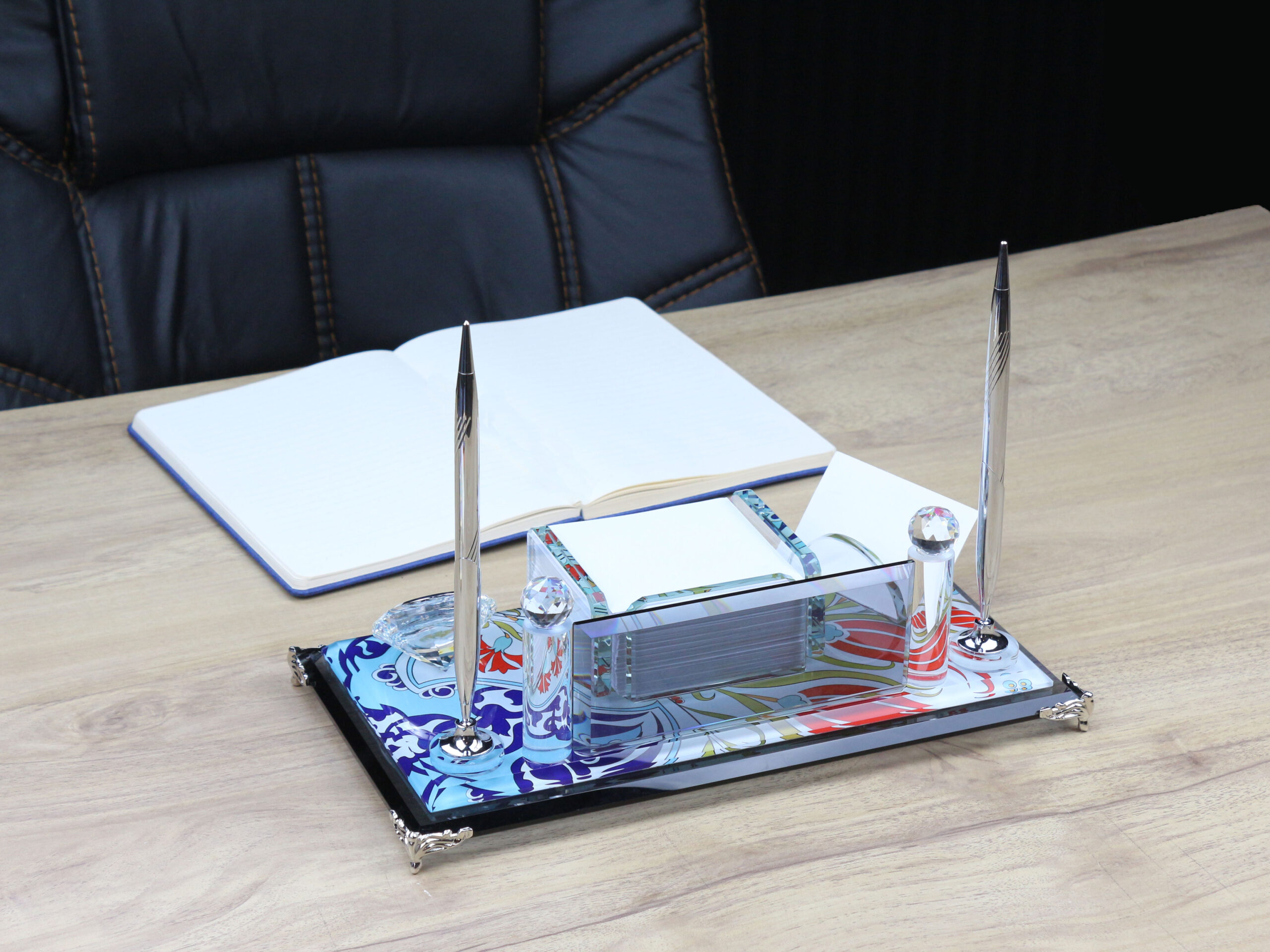 Gaziantep Kristal Masa İsimliği (Cam), ofis alanınıza şıklık ve zarafet katmak için mükemmel bir seçenektir. Yüksek kaliteli kristal malzemeden üretilen bu isimlik, zarif bir gümüş kalem ile birlikte gelir, bu da hem işlevsellik hem de estetik bir görünüm sunar. Üzerinde kişisel adınız ve unvanınız estetik bir şekilde sergilenir, böylece profesyonel imajınızı güçlendirir. Modern tasarımıyla her türlü ofis dekorasyonuna uyum sağlar. Hem işlevsel hem de dekoratif bir aksesuar olarak, çalışma alanınıza anlam ve zarafet katan bu isimlik, aynı zamanda anlam dolu bir hediye alternatifi olarak da öne çıkar.