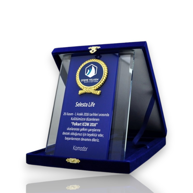 Ana Sayfa Kadife Kutulu Plaket Kişiye Özel Kadife Kutulu Kristal Plaket