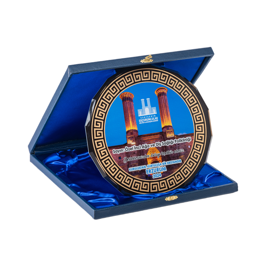 Lacivert Deri Kutulu Kristal Tabak Dernek Plaketi Özellikleri