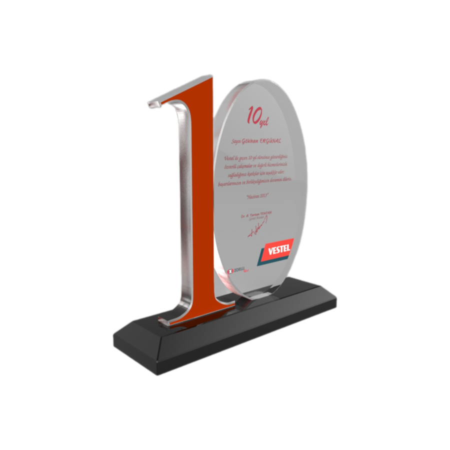 Özel Kesim 10. Yıl Kristal Plaket