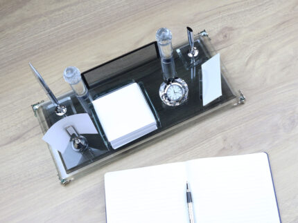 Şeffaf Bloknotlu Kristal Masa İsimliği