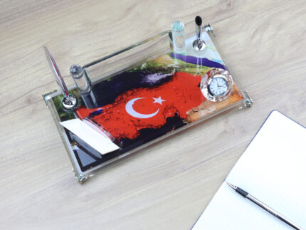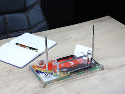 Şeffaf Bloknotlu Kristal Masa İsimliği, ofis alanınıza şıklık ve zarafet katmak için mükemmel bir seçenektir. Yüksek kaliteli kristal malzemeden üretilen bu isimlik, zarif bir gümüş kalem ile birlikte gelir, bu da hem işlevsellik hem de estetik bir görünüm sunar. Üzerinde kişisel adınız ve unvanınız estetik bir şekilde sergilenir, böylece profesyonel imajınızı güçlendirir. Modern tasarımıyla her türlü ofis dekorasyonuna uyum sağlar. Hem işlevsel hem de dekoratif bir aksesuar olarak, çalışma alanınıza anlam ve zarafet katan bu isimlik, aynı zamanda anlam dolu bir hediye alternatifi olarak da öne çıkar.