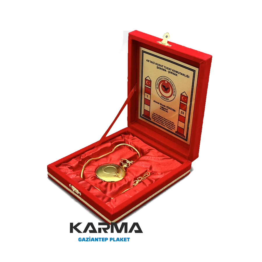 Askeri Hizmet Anısı Komando, Jandarma, Uzman, Piyade, Komutanlar İçin Kutulu Hizmet Anısı Tasarımlı Köstekli Saat Krom