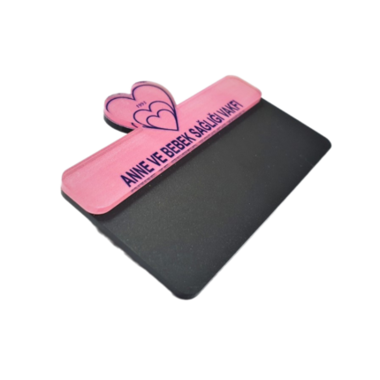 - Boyutları 44mmx70mm mat pleksiden yapılan modelimiz tebeşir kalemi ile kendi isimlerini yazabilirsiniz.