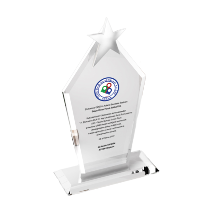 Kristal Yıldızlı Okullar Arası Turnuva Plaketi Kristal plaket modelleri, başarıyı ve üstün performansı onurlandırmanın zarif ve etkili bir yoludur. Çeşitli