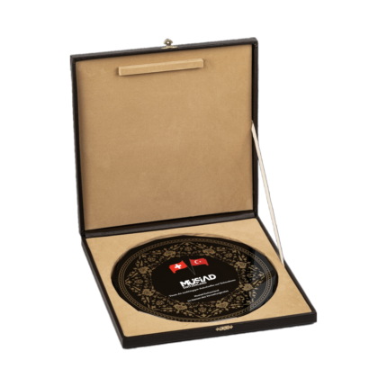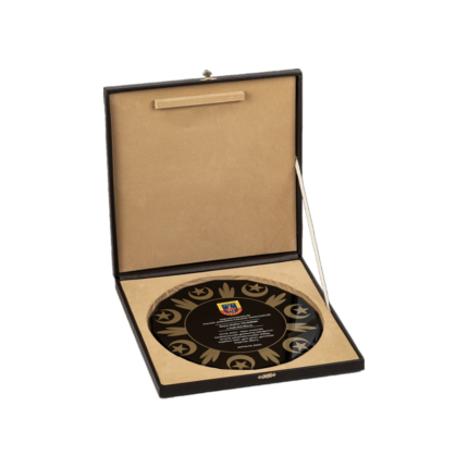 Deri Kutulu Desenli Kristal Tabak Plaket