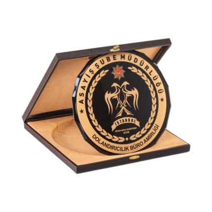 Deri Kutulu Kristal Cam Tabak Polis Plaketi