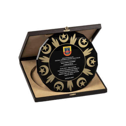 Deri Kutulu Kristal Jandarma Hizmet Anısı Tabak Plaket Özellikleri
