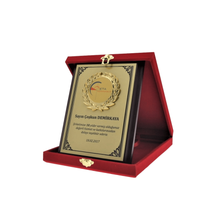 - Plaket üzerine logo ve metin yerleştirilmektedir.